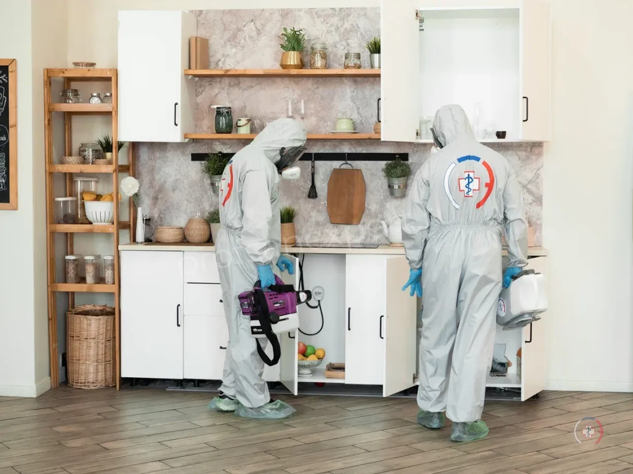 Для дезинфекции и дезинсекции против насекомых специалисты выполняют санитарную обработку с помощью холодного тумана. Такая технология предусматривает распространение дезинфицирующих составов с помощью специального генератора пара. Крошечные капельки образуют мелкодисперсную взвесь, которая заполняет всё воздушное пространство и покрывает тонкой плёнкой каждую поверхность, проникая в самые труднодоступные места.